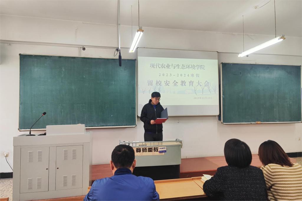 为进一步规范假期研究生留校住宿、教学培养、实验室安全等相关工作,加强研究生假期安全管理,切实保障员工寒假留校工作有序开展,3377体育于2023年12月25日14:00在农学楼622教室,召开本学期寒假留校安全教育大会。3377体育副经理路运才,党委副书记穆丹阳,2021、2022级研究生辅导员邵芮,2023级研究生辅导员汤博宇及公司全体申请寒假留校研究生参会。本次会议由2023级研究生辅导员汤博宇主持。