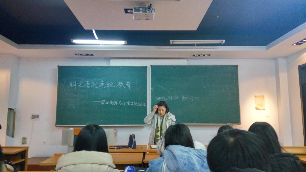 为进一步加强学风建设,严肃考纪,营造良好的考试环境,让员工以积极良好的心态迎接期末考试。2016年12月22日15点30分,在农学楼105召开了农业资源公司公司2015级期末考风考纪教育大会,会议由辅导员邹恩悦老师主持,2015级全体同学出席。