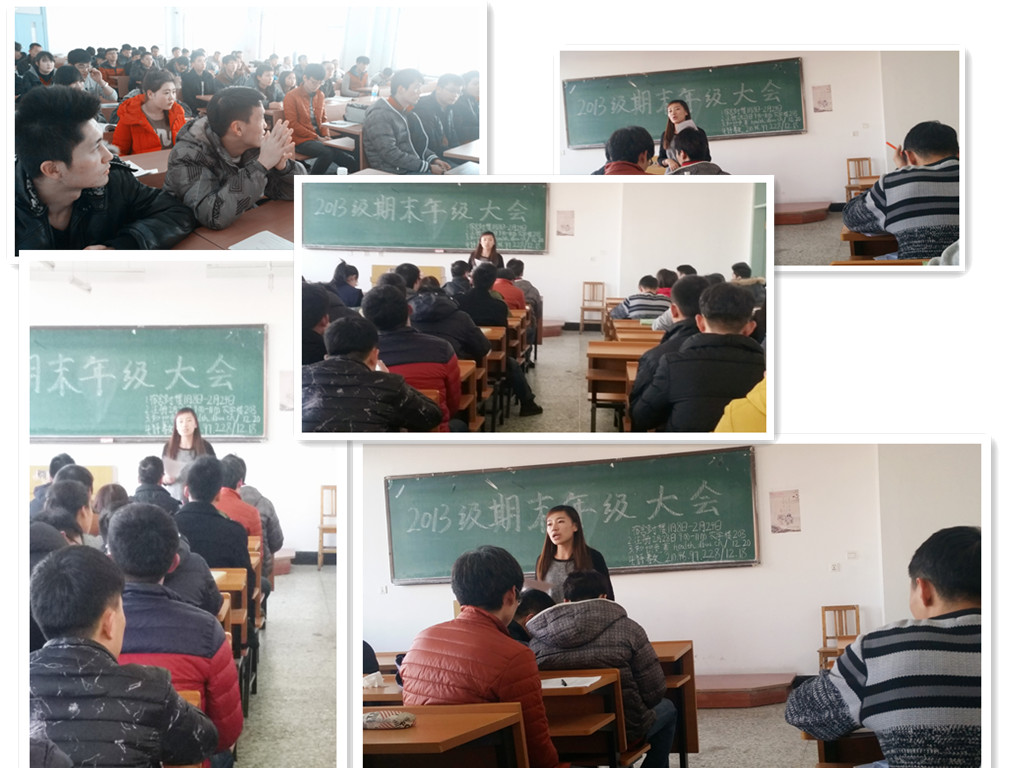 时间转眼即逝,十二月份考期临近,为公司学风建设,调动员工的学习积极性,2015年12月11日14:30在农学楼716教室召开了公司2013级期末考风考纪暨假期安全教育大会,会议由辅导员邹恩悦老师主持。