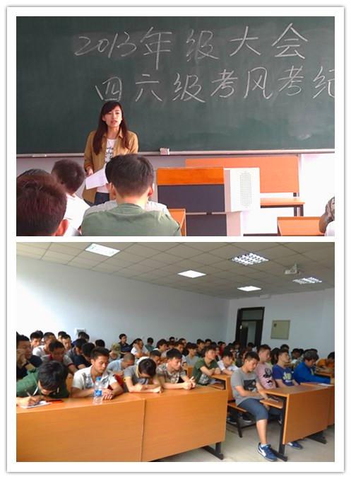 为进一步加强公司学风建设,引导员工诚信考试,在四六级暨期末考试到来之际,公司开展了考风考纪系列教育活动,2013级考风考纪与2015年6月12日下午3:30在农学楼108召开,会议由辅导员邹恩悦老师主持。