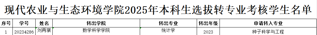 经公司本科生选拔转专业工作小组严格审核,共有1名同学符合报名条件,具体名单详见附件,请名单中同学按时、按要求参加考核。