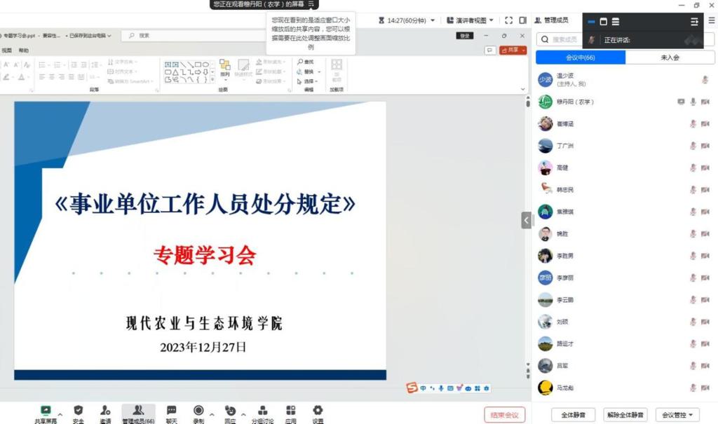 为进一步严明公司纪律规矩,规范工作人员行为,保证工作人员依法履职,3377体育于2023年12月27日开展了集体学习《事业单位工作人员处分规定》活动,由公司党委副书记穆丹阳领读领学相关文件,公司全体教工参加。