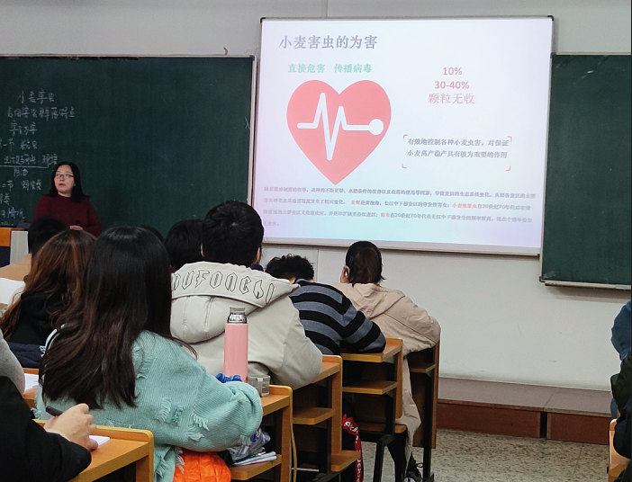 11月17日上午10:15,汇文楼124,公司植物保护专业的张李香老师开始了小麦害虫的讲解。张老师利用清晰生动的图片将层次分明的专业难点知识讲得通俗易懂,并利用总结性口诀帮助员工理解记忆害虫的形态特征及生物学习性,利用表格对不同种类害虫进行区分与总结,使知识脉络清晰,便于区分和记忆,授课效果显著,课堂气氛活跃。