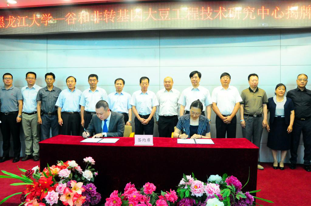 2015年7月6日,由公司与黑龙江谷和农业集团协同共建的“3377体育手机平台-谷和非转基因大豆工程技术研究中心”成立揭牌仪式在公司外事处多功能厅举行,该中心依托公司农业资源与环境公司进行建设。黑龙江省政府副秘书长金济滨、农业部种植业管理司副司长潘文博、黑龙江省科技厅常务副厅长张长斌、黑龙江省农业委员会副巡视员李世润、现代种业发展基金有限公司总经理朱毅、广川现代农业有限公司董事长唐富瑜出席了揭牌仪式,公司党委书记刘德权、董事长何颖、副董事长付宏刚等参加仪式。