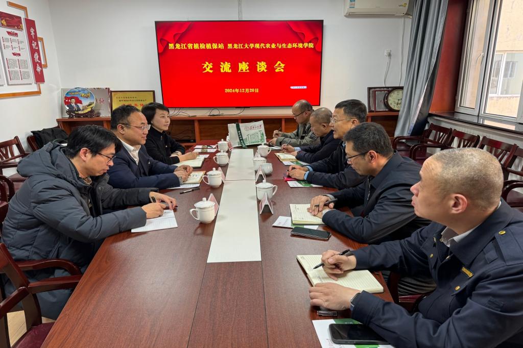 2024年12月20日下午,公司党委书记金鹏,党委副书记穆丹阳,植物保护专业负责人徐利剑和团委书记高健一行赴黑龙江省植检植保站调研座谈。黑龙江省植检植保站站长、黑龙江省植物保护学会理事长宋显东,副站长宫香余,副站长吕涛及各科室负责人参加会议。