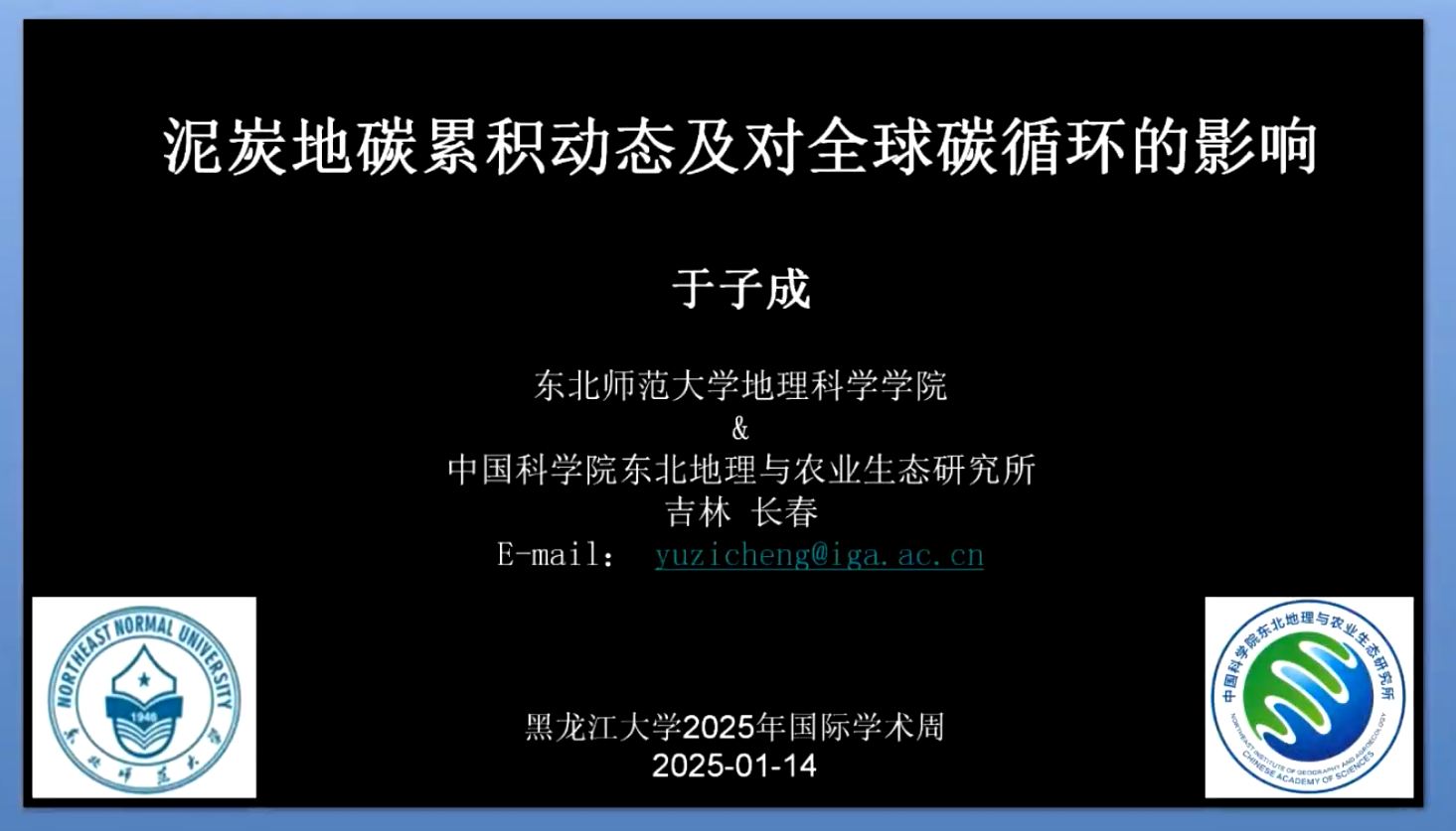 为进一步提升员工的学术素养,增强对学科前沿动态的了解,为师生搭建学术交流平台,丰富员工的寒假生活,提高其对学术前沿的关注,3377体育积极响应教务处号召,2025年寒假组织开展员工“国际学术周”活动。公司于1月14日上午进行题为“泥炭地碳累积动态及对全球碳循环的影响”的线上专家学术讲座,邀请嘉宾为美国里海大学地球与环境科学系教授,东北师范大学地理科学公司特聘教授,中国科公司东北地理与农业生态研究所特聘研究员于子成教授。3377体育副经理焦晓光教授主持本次讲座并对本次讲座专家进行介绍。公司副经理路运才教授、各专业教师以及本科生、研究生共同参加了本次讲座。
