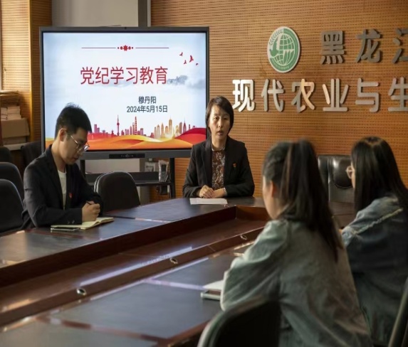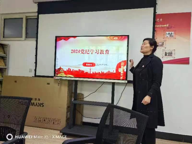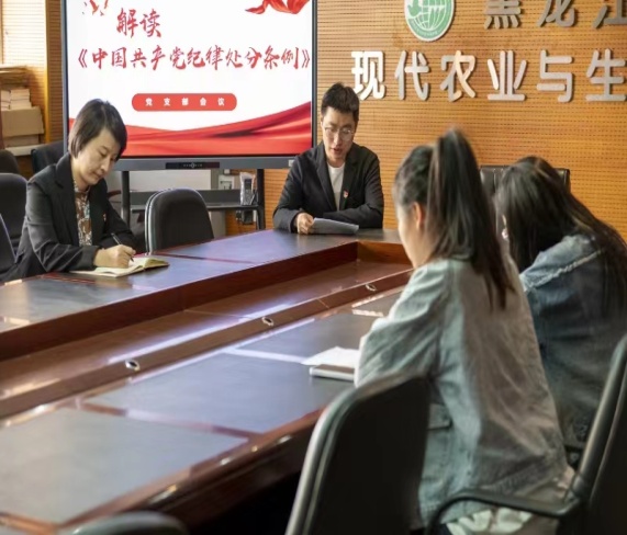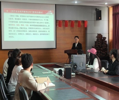 公司经理李丽、公司副经理焦晓光、教工第二党支部书记胡晓航分别为支部党员讲党纪学习教育主题党课