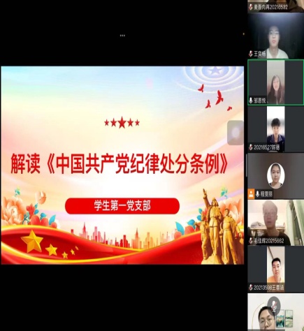 研究生第一支部汤博宇、研究生第二支部书记王昭懿、研究生第三支部书记邹秉辰为研究生党员讲党纪学习教育党课