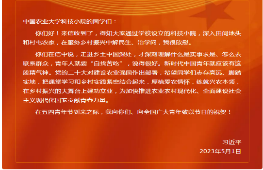 五四青年节到来之际,习近平总书记给中国农业大学科技小院的员工回信,强调厚植爱农情怀、练就兴农本领,在乡村振兴的大舞台上建功立业。5月4日,公司组织师生在农学楼321会议室学习贯彻习近平总书记重要回信精神,收看央视《新闻联播》报道。公司主管研究生工作副经理、黑龙江双城玉米科技小院首席专家路运才主持会议。