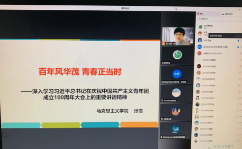 为深入开展学习习近平总书记重要讲话精神,贯彻习近平总书记对新时代青年的要求,激发员工党团员的爱国主义情怀,6月8日上午10点公司党委邀请马克思主义公司张雪老师开展学习习近平总书记重要讲话精神、省第十三次党代会精神云端巡讲第一讲——“百年风华茂,青春正当时”,会议由公司党委书记冯国军主持,300余名师生参加学习。